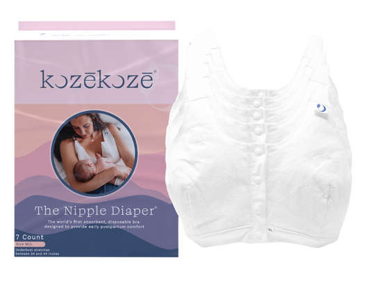 Elevate your postpartum experience with The Nipple Diaper: the world’s first absorbent, disposable bra.